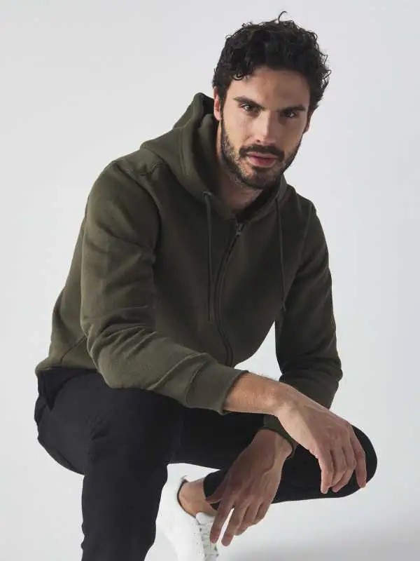 70% cotone, 30% poliestere. Felpa con cappuccio e zip, felpata internamente, è il capo perfetto per l’inverno. Collo, polsini e orlo inferiore in costina, rinforzo sul colletto, maniche set-in, struttura con cuciture laterali. Etichetta strappabile. Interno in poliestere ed esterno 100% cotone.